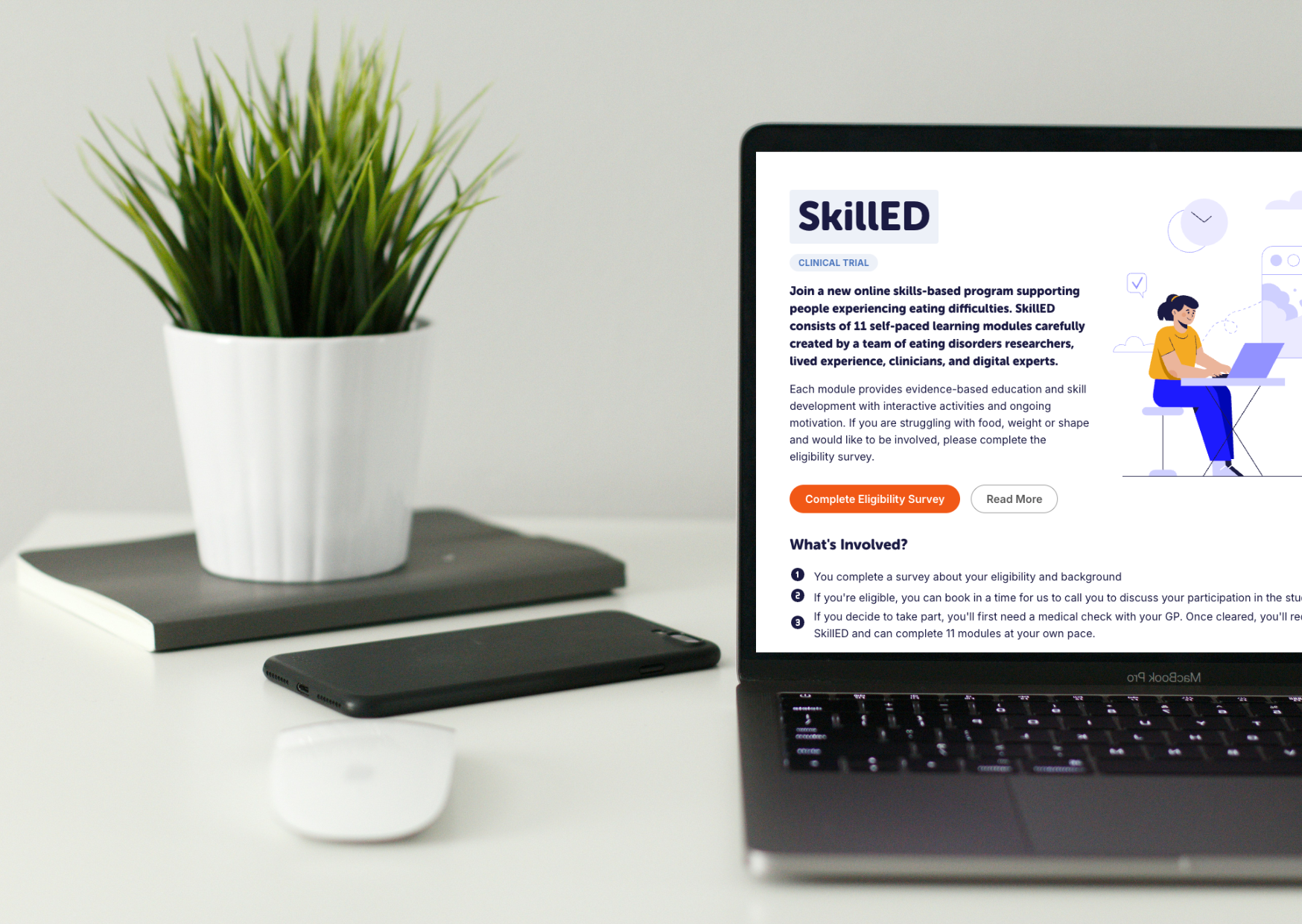 SkillED is an online cognitive behavioural therapy (CBT) self-help program designed for individuals struggling with food, weight and shape issues. SkillED consists of 11 self-paced learning modules carefully created by a team of eating disorders researchers, lived experience representatives, clinicians, and digital experts. Each module provides evidence-based education and skill development with interactive activities. With dropout rates for e-therapies reaching up to 80 per cent, improving user engagement is a critical challenge. By empowering users with treatment choice and integrating real-time support strategies, this study is expected to enhance engagement, reduce dropout, and improve patient outcomes.