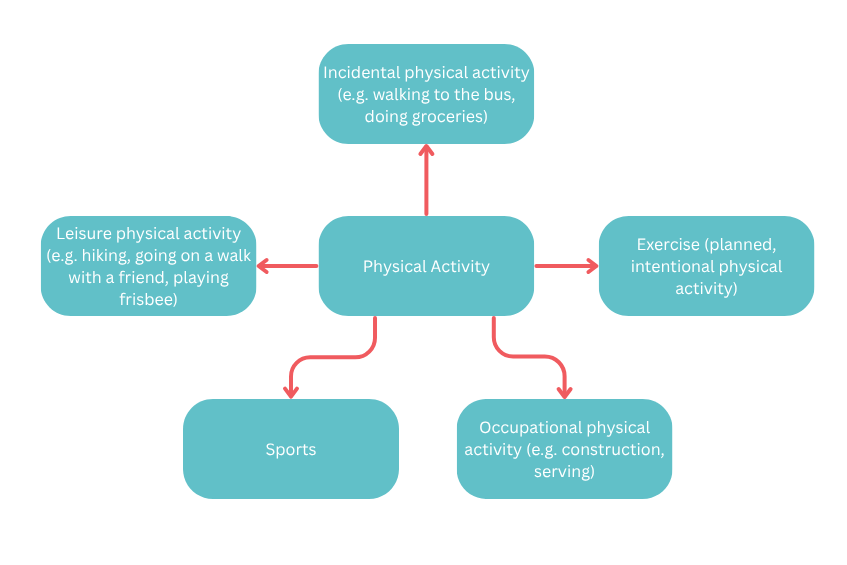 Physical activity comes in many different types, including occupational, incidental, leisure, and sport, which are all encountered daily. When you are experiencing an eating disorder, it's often not safe for you to engage in the same amount of physical activity that you once did.